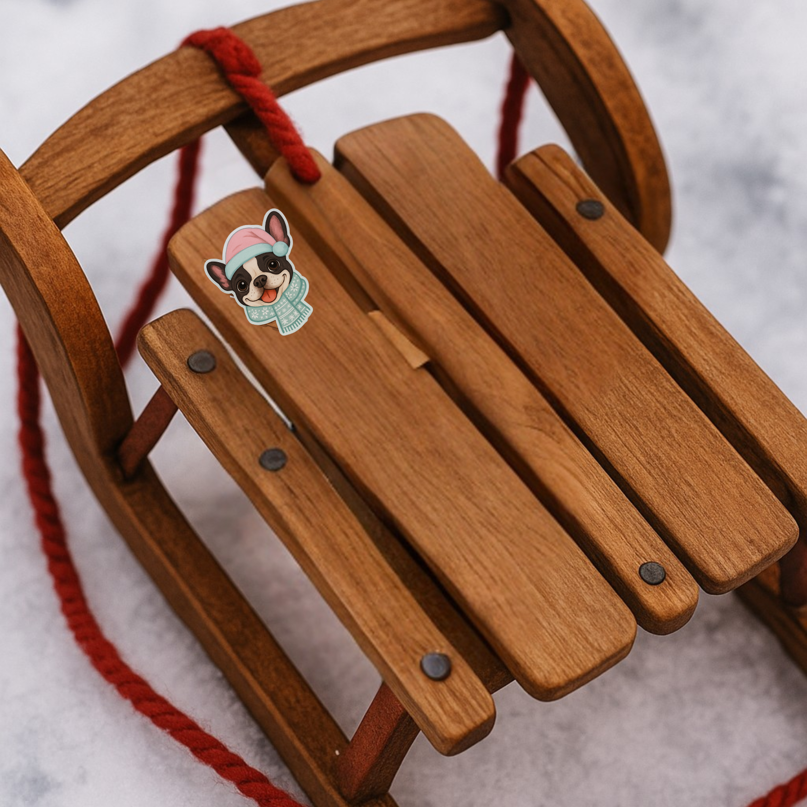 Winter Frenchie Christmas Sticker – Cute Dog Kiss-Cut Vinyl Decal (3”, 4”, 5.5”)